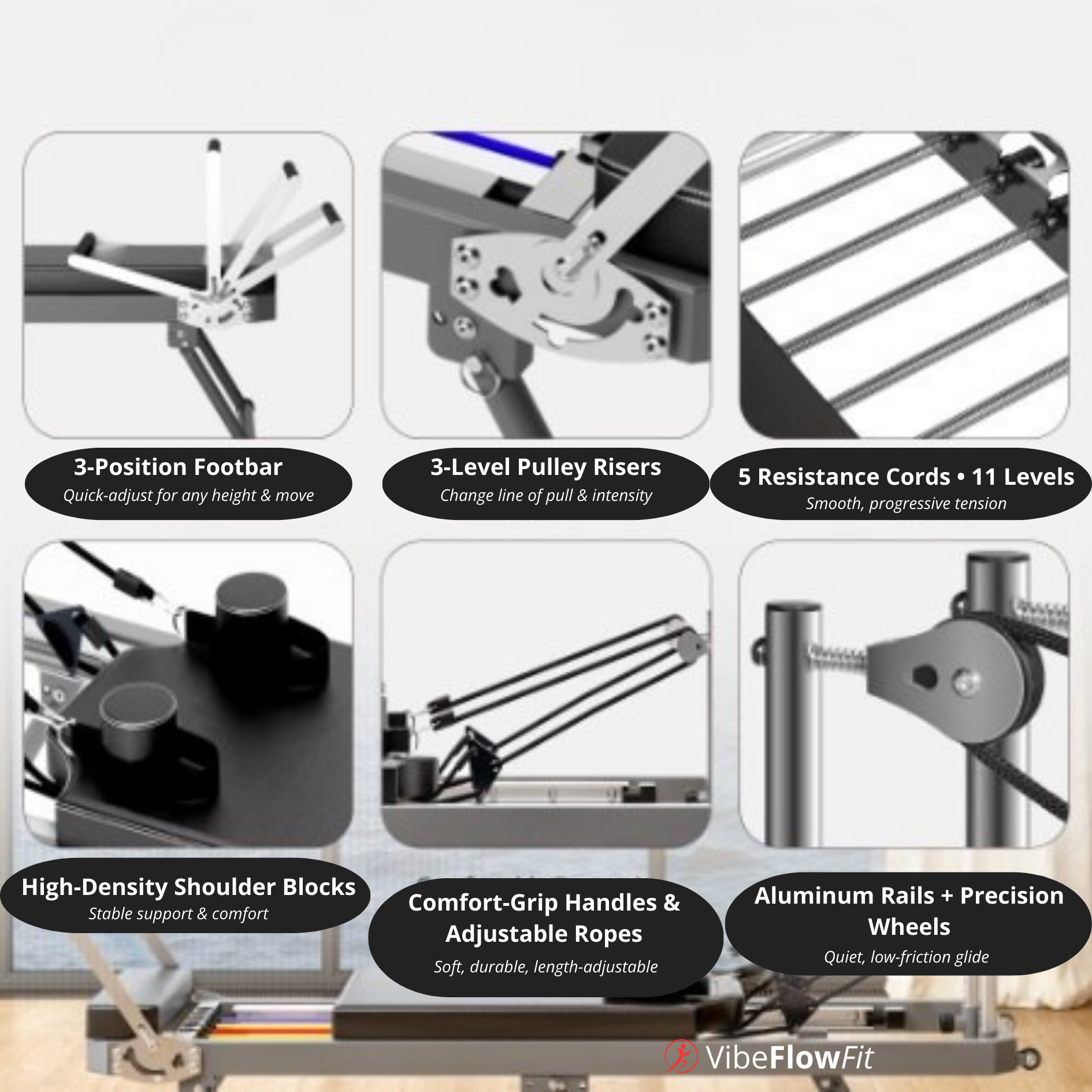 ✅ Reformer base with smooth carriage