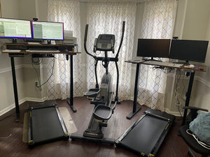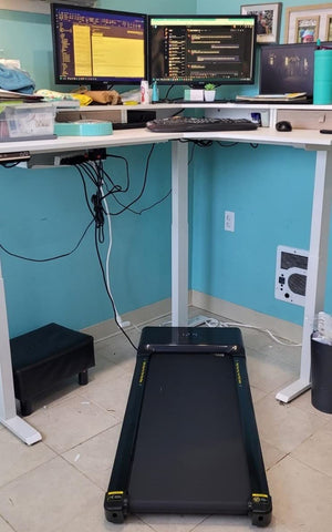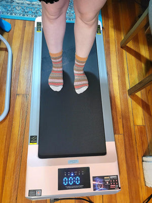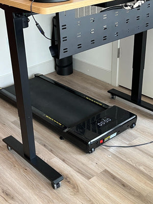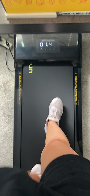 The VibeFlowFit SlimStride is your go-to solution for walking workouts in tight spaces. With its ultra-slim profile and whisper-quiet operation, this compact walking pad fits effortlessly under your desk or in front of your couch—no assembly required. Whether you're squeezing in steps during meetings or catching up on your favorite shows, SlimStride helps you stay active without sacrificing floor space or focus.